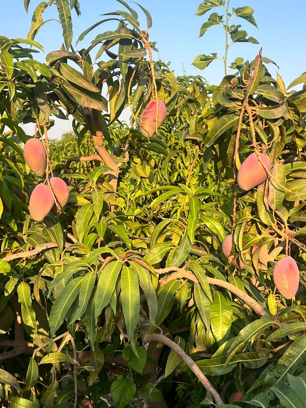 Seasonal fruits such as mangoes, grapes, pomegranates, and citrus